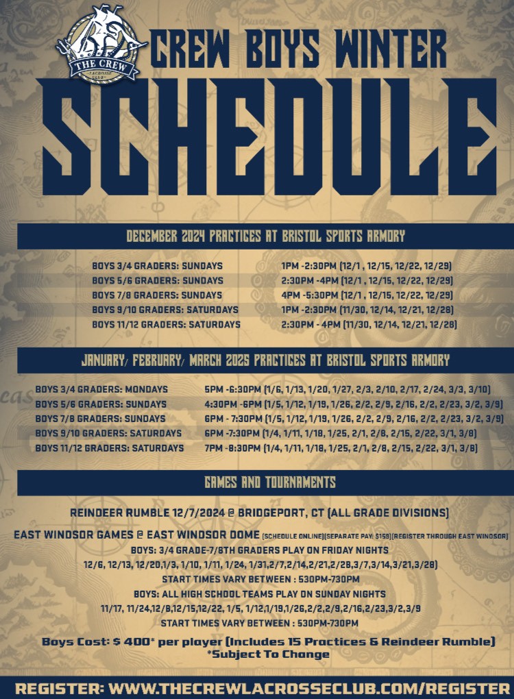 Focus of the program will be skill development, position specific instruction, game IQ and recognition through scrimmage(s), and overall regular season readiness. The position specific instruction piece will include space for goalies, face-off players, long poles, attackmen, and midfielders.